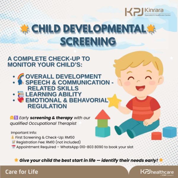 Help your little one thrive with our Child Developmental Screening at KPJ Kinrara – a complete check-up to monitor and support your child’s growth in: